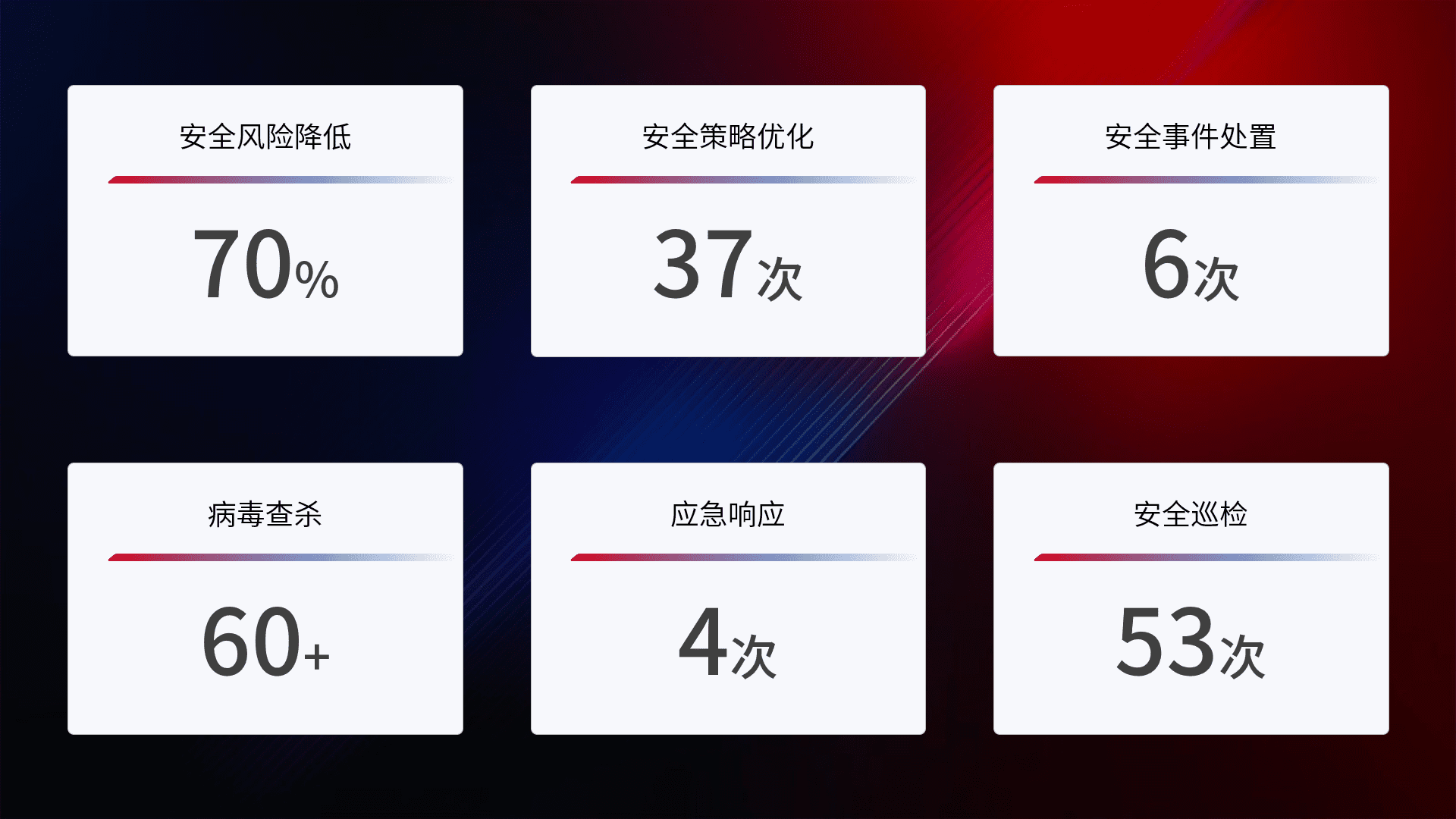提供全面的安全事件报告体系,,包括处置报告、、周报、、、、季度和年度总结,,,结合持续监控,,,,帮助客户深入了解网络安全状况。。。。