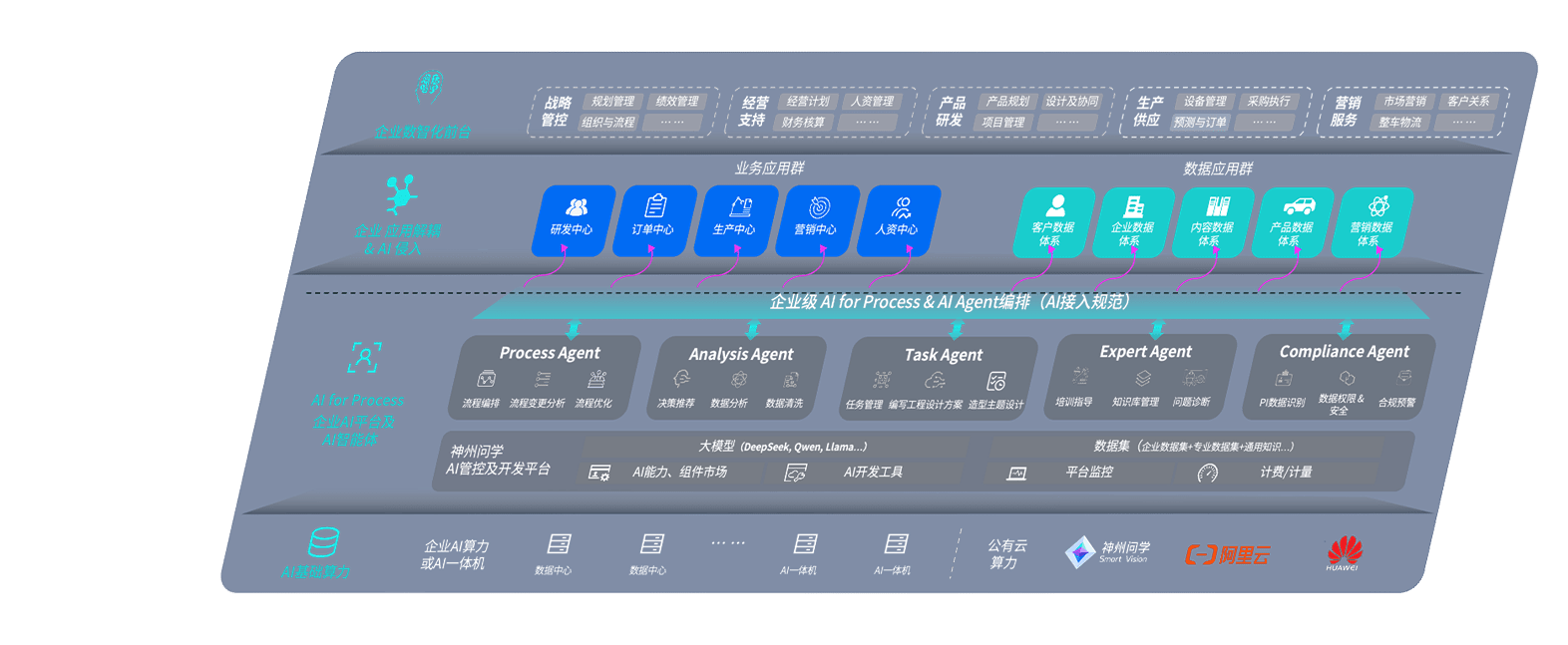 Z6尊龙问学智车解决方案是一套基于AI技术的汽车行业智能化系统,,覆盖从底层算力到顶层AI应用的全栈方案。。。方案由算力层、、模型层和应用层组成:算力层,,,,方案支持多种一体机配置,,,,具备云端灵活部署、、多云适配以及动态优化计算资源的能力;模型层,,,Z6尊龙问学平台版提供了企业级AI应用一站式构建与管理平台,,,支持基于后训练强化技术的汽车企业专属模型的训练、、、、评测和运营;应用层,,,,Z6尊龙问学DeepSeek版提供包括超级员工、、智能招采、、、智能营销、、智能客服、、AI for BI等一系列解决方案,,,,可助力汽车行业实现数字化转型,,,,让管理更智能、、、、响应更敏捷。。
