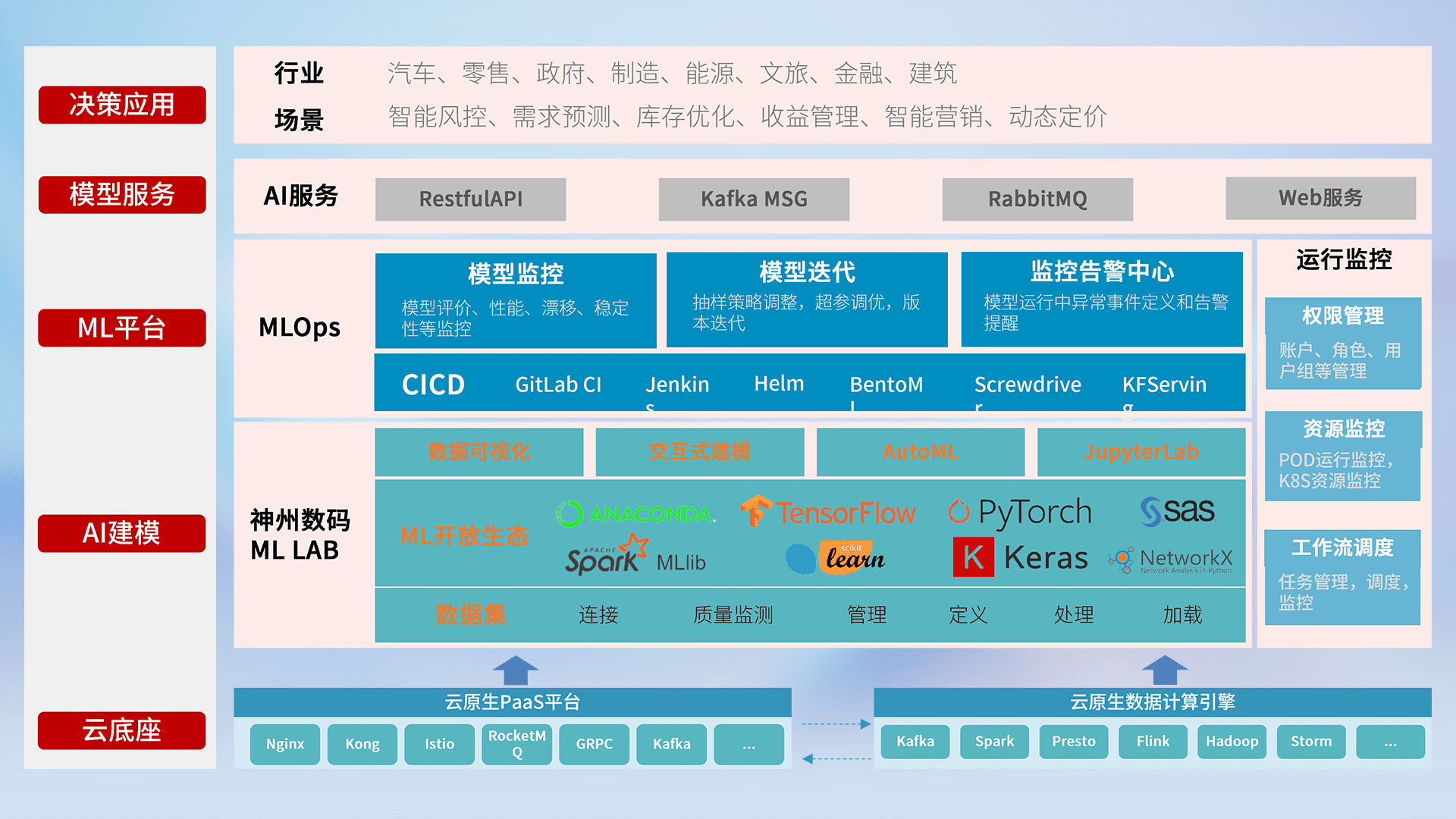 数据+模型双引擎驱动,,面向智能服务场景,,,快速灵活利用AI技术,,支持业务决策,,助力企业智能化转型破局。。。。