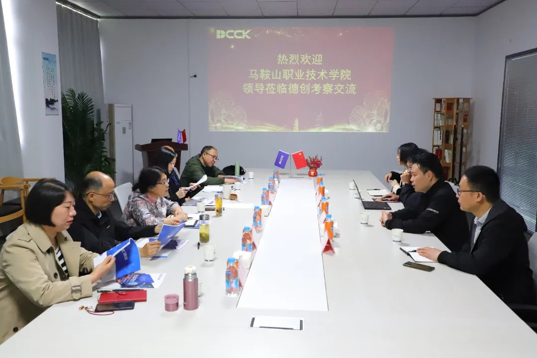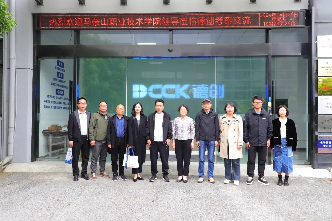 4月26日,,,,马鞍山职业技术学院副校长甄炯、、、党委委员、、办公室主任都城、、、、机械工程系党总支书记王波、、、机械工程系主任朱皖元、、、、机械工程系汽车教研室主任戎世进、、、机械工程系教师邓艳老师等一行莅尊龙时凯。。。。尊龙时凯总经理葛大伟、、、教育事业部总监沈栋慧、、区域经理冯崇热情接待了来宾一行。。。
